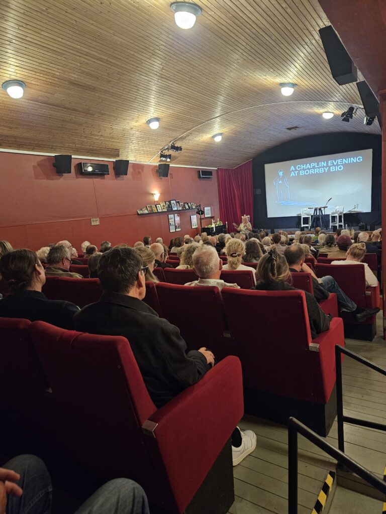 Efter ett hjärtligt och varmt samtal mellan Thomas Nordanstad från Borrby Studios, Christopher och er i publiken blev det filmvisning. Borrby Bio visade filmen ”Diktatorn” från 1940 som är skriven, regisserad, producerad och med huvudrollen agerad av Charlie Chaplin. En fantastisk, satirisk komedi där Charlie själv spelar båda huvudrollerna. Filmens ämne är precis lika aktuellt nu som då trots att 85 år har gått, vilket i sig är otroligt sorgligt. Vid filmens födelse 1940 önskade man med största sannolikhet att världen hade kommit närmare världsfred än vi tyvärr har gjort.