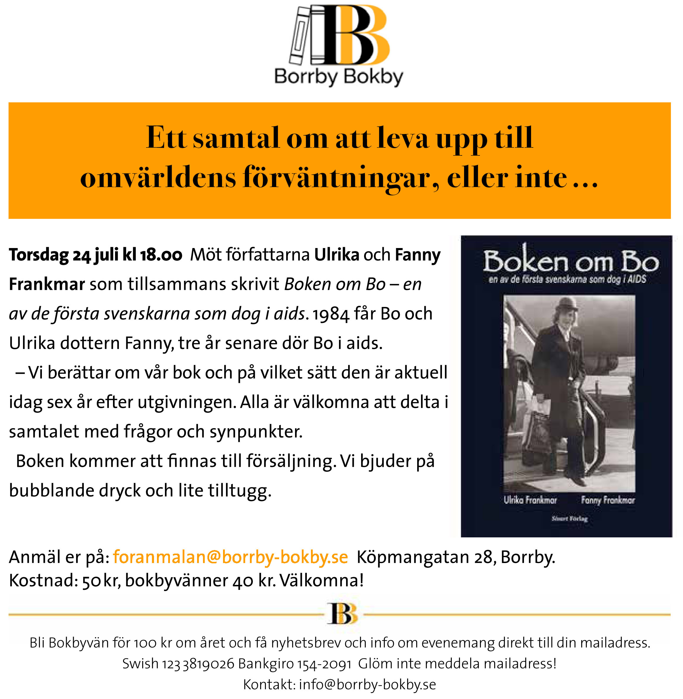 Möt författarna Ulrika och Fanny Frankmar som tillsammans skrivit ”Boken om Bo” – en av de första svenskarna som dog i aids. 1984 får Bo ochUlrika dottern Fanny, tre år senare dör Bo i aids.